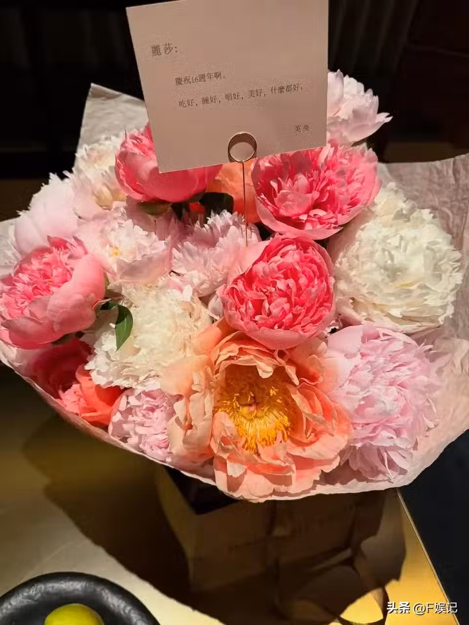 隨後我們認真看花上的卡片,上面寫著:「慶祝16周年啊。吃好、睡好、唱好、美好,什麼都好。」