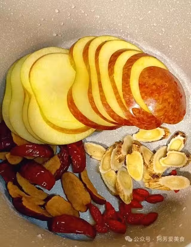食材:蘋果1個、黃芪5克、紅棗3顆、枸杞10粒