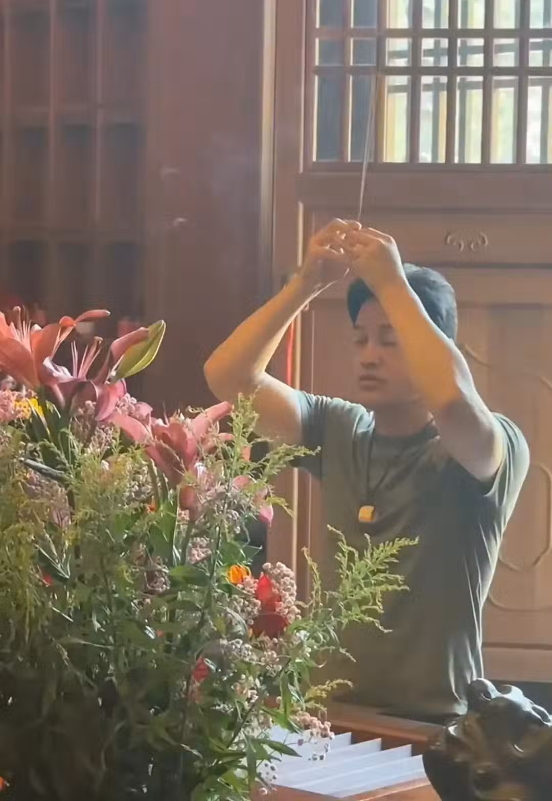 在那之後,他和老婆楊小娟一起穿上居士服飾,到法雨寺繼續做功德。----------------------------------------------------