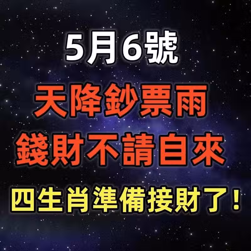 5月6日天降鈔票雨,錢財不請自來的生肖!