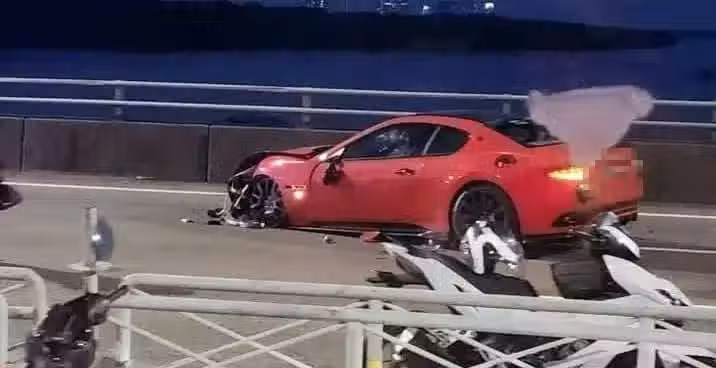 涉嫌釀禍的紅色瑪莎拉蒂跑車泊在路邊。