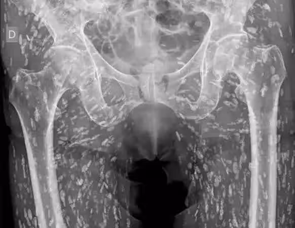 ▲國外一名男子因食用未煮熟的豬肉,染上豬囊尾蚴病,骨盆布滿了密密麻麻的蟲卵。(圖/翻攝自X)