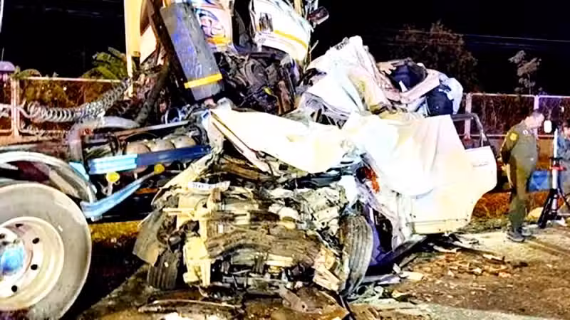 恐怖車禍!警車與大卡車相撞! 10警員當場喪命!