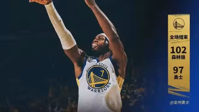 97-102,G3主場作戰的勇士不敵森林狼,目前系列賽1-2落後。