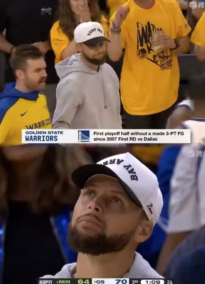 其實他知道自己的能力是很強的,而且也確實很能打,但是當時看這個比分,他也知道沒戲了。如果兩個主場都沒拿下,勇士就不可能有奇蹟了。拼下一個主場,第6場他還能回來,自己兩個主場沒守住,你指望著去狼隊的主場贏一場球?勇士這幫人就沒這個能力,所以當時這一幕出現,庫里就已經認命了。