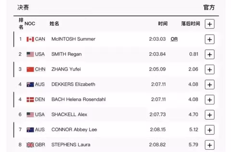 於子迪的成績竟然超過了德克斯!這能說明,於子迪這次奪冠的成績含金量非常高。她可不是趁著張雨霏缺席200米蝶泳撿漏奪冠。