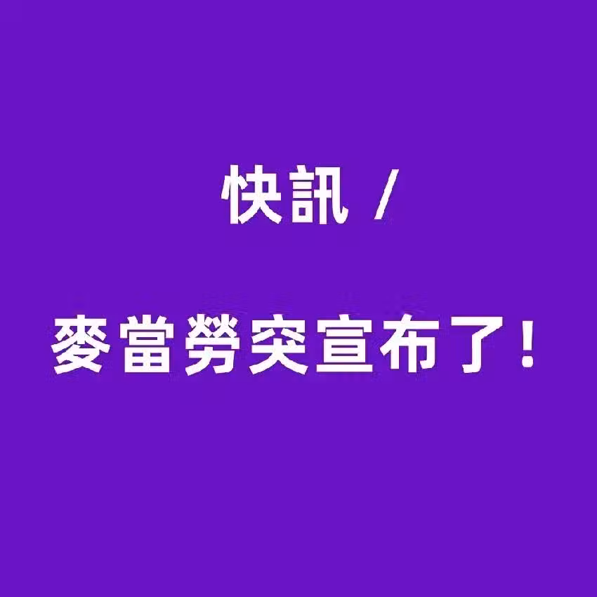 快訊 / 麥當勞突宣布了...