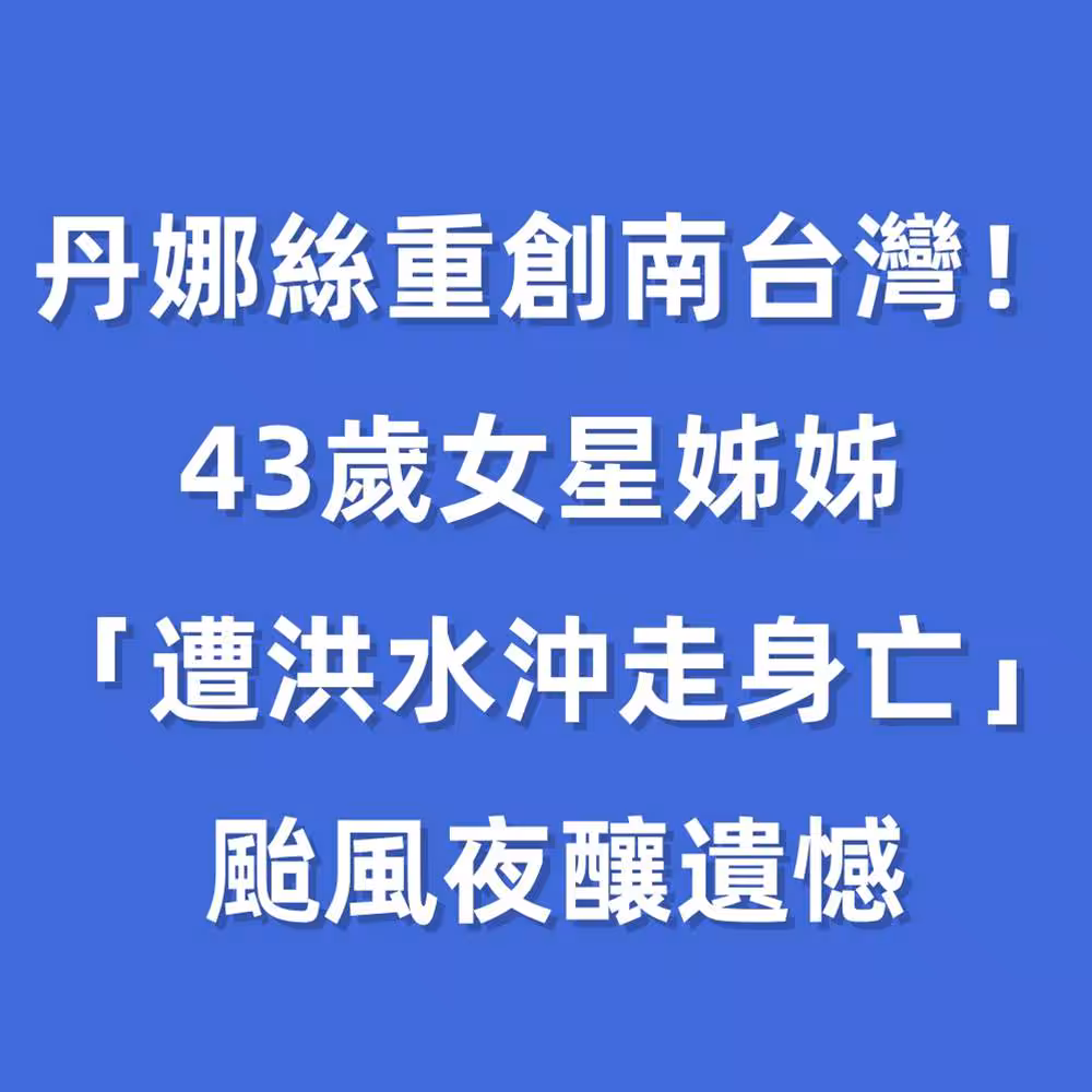 丹娜絲重創南台灣!43歲女星姐姐「遭洪水沖走身亡」颱風夜釀遺憾