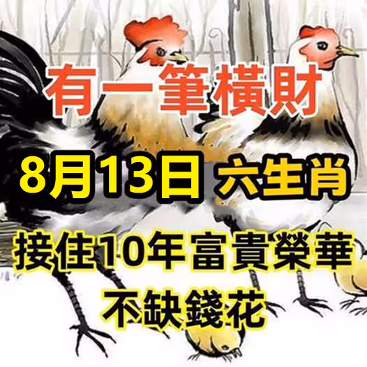 8月13日有一筆橫財,六生肖接住10年富貴榮華,不缺錢花!