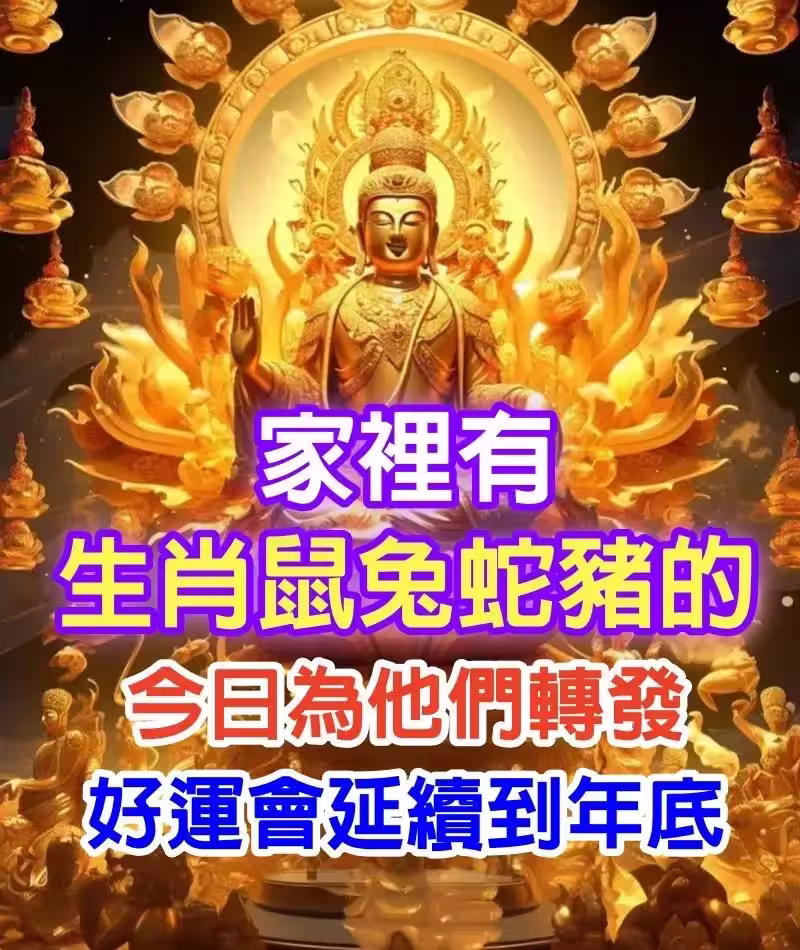 家裡有生肖「鼠兔蛇豬」的,今日為他們轉發,好運會延續到年底.