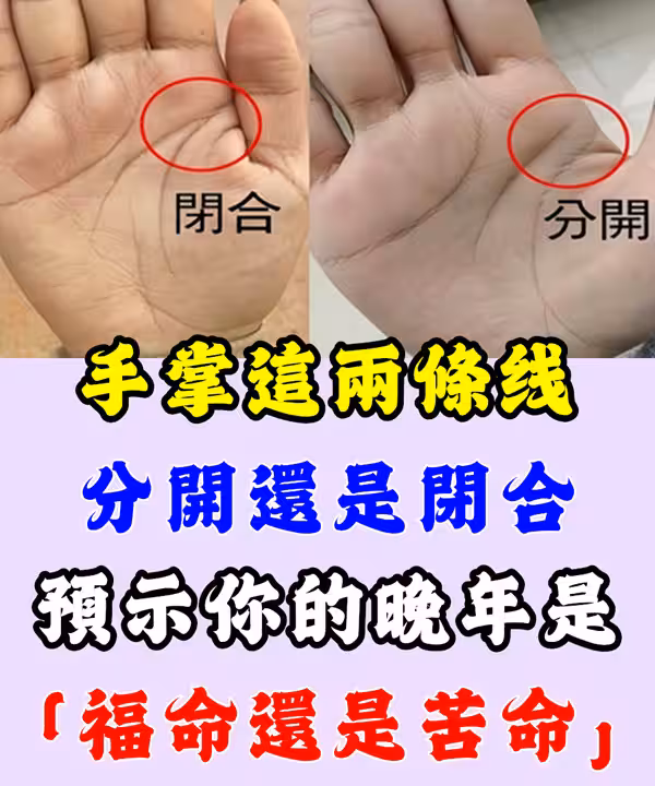 手掌這兩條線「分開」還是「閉合」 預示晚年「福命還是苦命」:太准了!