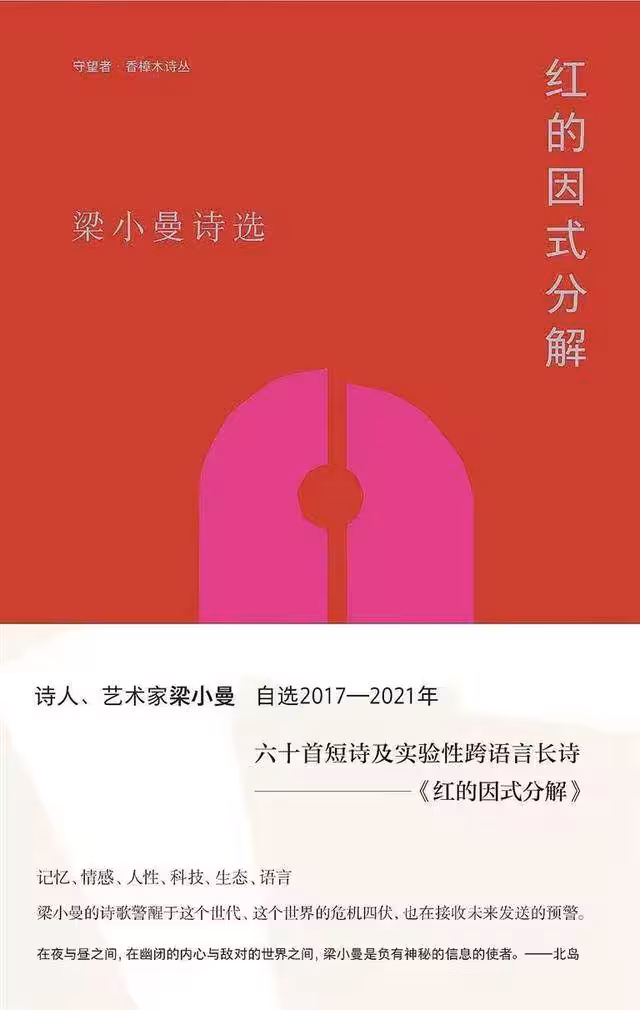 梁小曼,1974年出生於深圳,致力於詩歌創作的她,早年經歷了繁雜的文藝與學術積澱。 雖然她的詩歌創作起步較晚,35歲才開始接觸詩歌,但她的作品在文壇的影響力卻不可小覷。 她的詩集《紅的因式分解》與詩歌攝影集《系統故障:詩與攝影:2009-2019》,無一不展示了她在詩歌與視覺藝術上的雙重才華。 正如評論家王瑛所說:「梁小曼的詩有著莊嚴的形式感,她能在詩中找到語言與物的內在聯繫,表達出獨具深度的詩意。 」 梁小曼曾說,「我對文學與閱讀的熱愛受到家庭影響,父親的書架除了專業書、醫書,就是文學與詩詞,是我小時候最愛去探索的寶藏。 上世紀90年代,我在南方的某所大學進修我的漢語言文學時,除了外國小說、.中.國.詩詞,我也讀了不少現當代漢語新詩。 如果說,一個詩人寫詩前需要準備其語言,那我算是有所準備吧。 」 她似乎尤為珍視自己的詩人身份,稱自己為「詩人、譯者、攝影師和畫畫的人」,「詩人」總是在最前頭。