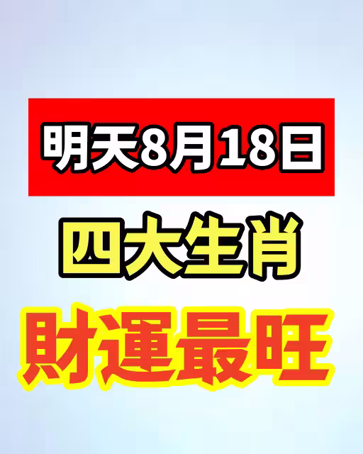 明天8月18日:四大生肖,財運最旺!! 隨著日曆翻至8月18日,天象轉動,財氣涌動,註定會有幾位幸運的生肖在這一天迎來財運高漲、好事不斷的時刻。 無論是正財還是偏財,皆有機會獲得豐厚回報。 尤其是的朋友,將會迎來難得的「財神照拂」時機,吉星高照,貴人鼎力相助,可說是錢財滾滾,福運綿綿。