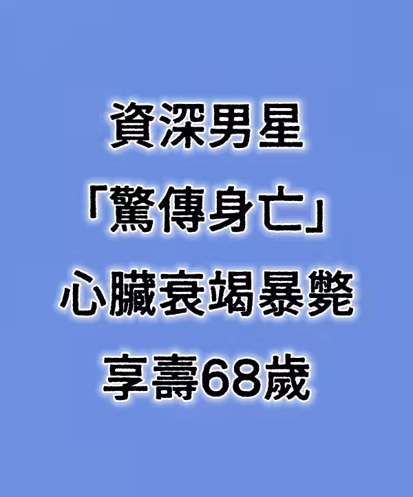 資深男星「驚傳身亡」!心臟衰竭暴斃 享壽68歲