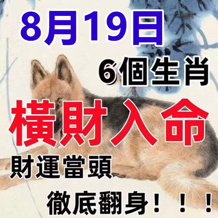 8月19日一筆橫財入命,6個生肖財運當頭,徹底翻身!!