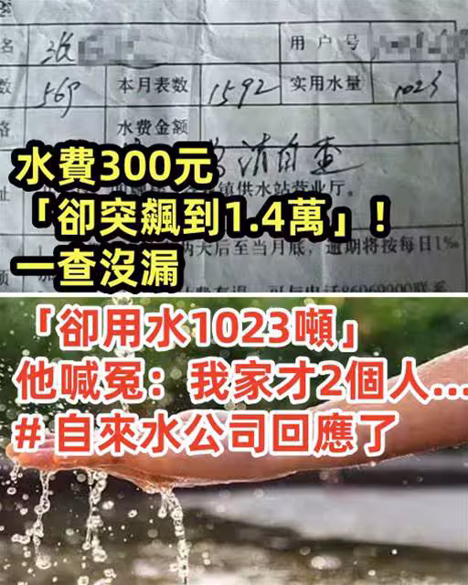 水費300元「卻突飆到1.4萬」!一查沒漏「卻用水1023噸」他喊冤:我家才2個人… # 自來水公司回應了