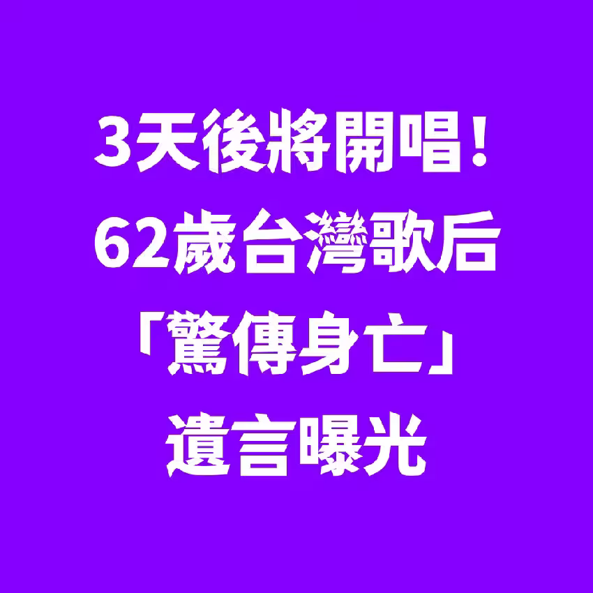 3天後將開唱!62歲台灣歌后「驚傳身亡」遺言曝光