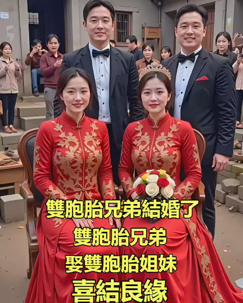 在喜氣洋洋的婚禮現場,一場特別又溫馨的儀式吸引了所有人的目光——一對雙胞胎兄弟與一對雙胞胎姐妹,同一天步入婚姻的殿堂!這對對李明與李亮、王婷與王琳的浪漫愛情,終於開花結果,成為眾人祝福的焦點。