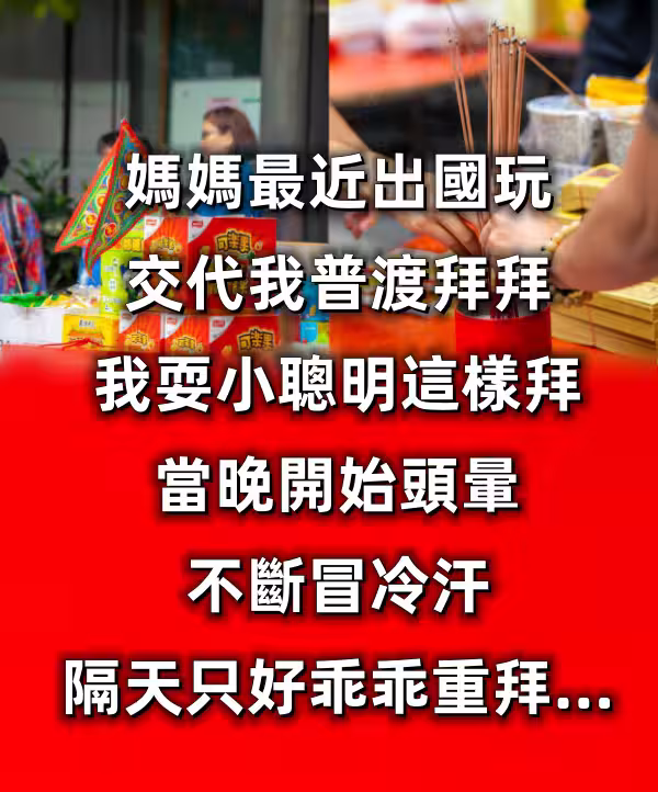 媽媽最近出國玩,交代我普渡拜拜,我耍小聰明這樣拜,當晚開始頭暈...不斷冒冷汗,隔天只好乖乖重拜…