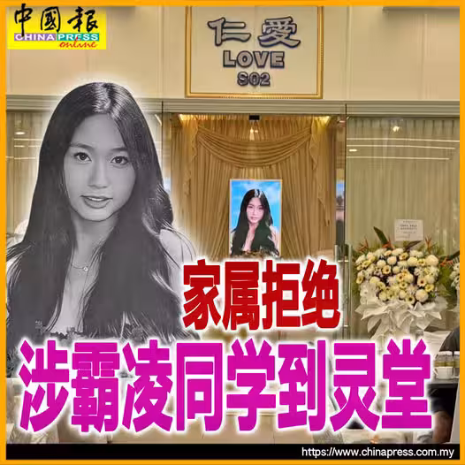 (吉隆坡23日訊)「華裔女大生疑被霸凌墜亡」案;3名被指霸凌死者何恩霓的同學,欲前往靈堂弔唁,惟最終遭到家屬拒絕!