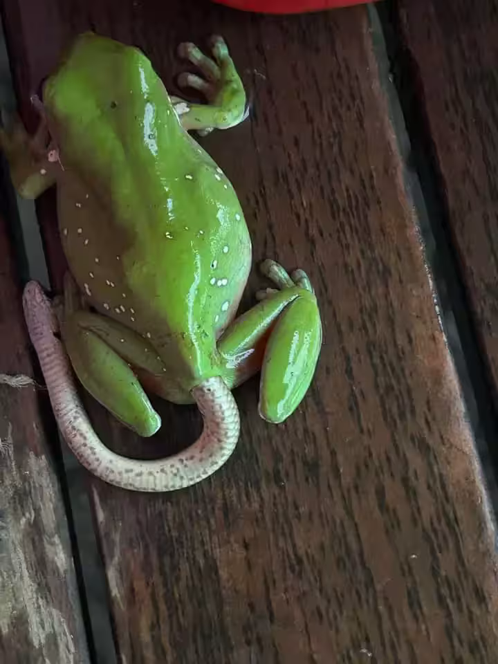 赫見樹蛙屁屁「多了條白尾巴」!她幫忙一拉「拉出一條長長的」眾人全看傻:怎麼搞的?