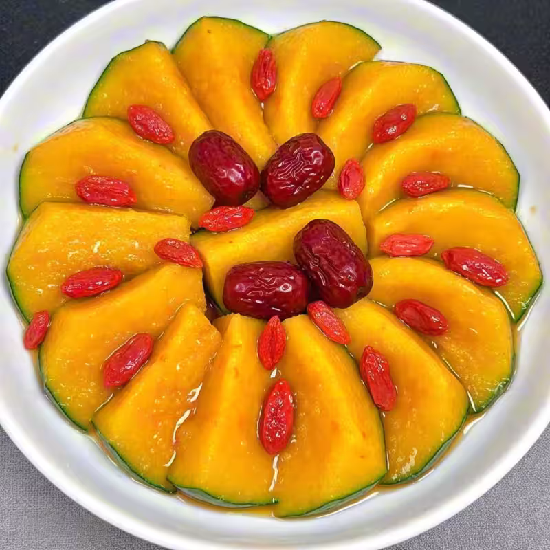 【功效】補中益氣、養肝明目、潤腸通便。南瓜是秋季的代表性食材,富含β-胡蘿蔔素和膳食纖維,有助於保護視力、促進腸道健康。紅棗和枸杞都是傳統的滋補食材,具有補血養肝的功效。這道蒸菜做法簡單,最大程度保留了食材的營養,甜而不膩,老少皆宜。 【食材】