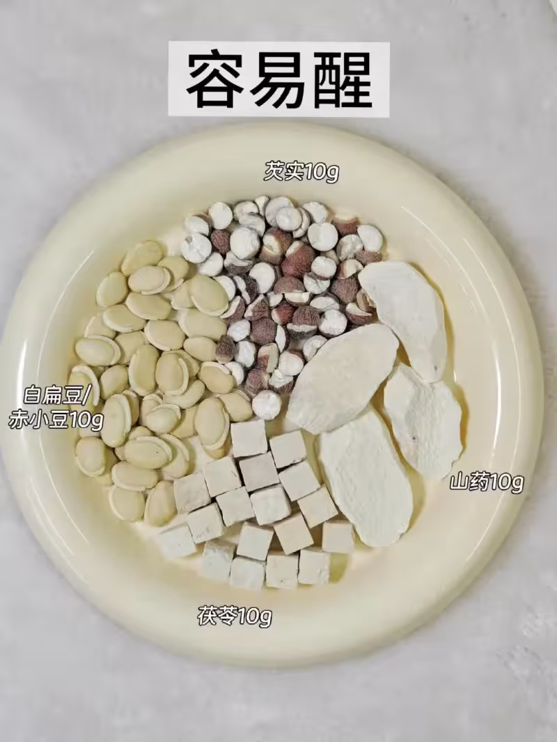 1、準備茯苓10g➕山藥干15g➕芡實10g➕白扁豆10g
