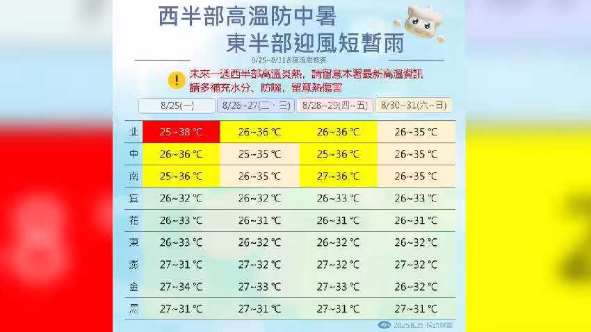 氣象署說明,目前台灣上空晴朗無雲,劍魚颱風仍是中度颱風,剛離開海南島,目前位於東京灣上,逐漸朝中南半島的方向前進,進到陸地後就會迅速減弱,所以對台灣沒有太大影響。