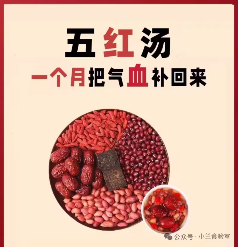 紅豆、花生提前浸泡2小時,所有食材加水1L燉煮40分鐘,最後加紅糖融化。