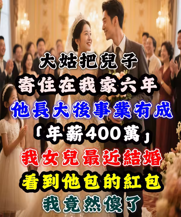 大姑把兒子寄住我家超過六年!!他長大事業有成「年薪400萬」 我女兒最近結婚「看到他包的紅包」我傻了