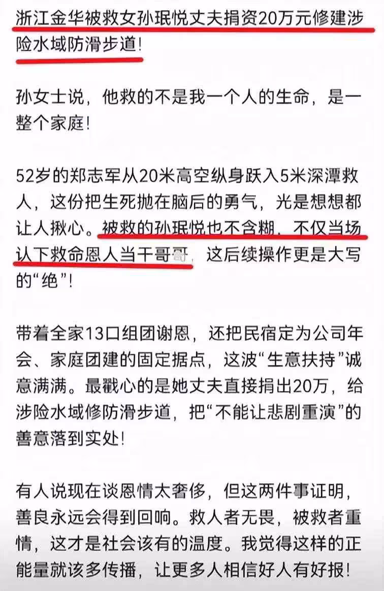 而且據說孫女士的丈夫特意捐贈巨款20萬用來幫助旅遊景點修建防滑步道,這樣能夠挽救更多的人。