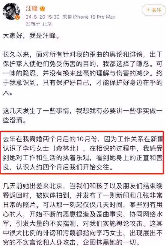可以說章子怡給足了汪峰體面,在聲明中說道「分離不代表辜負和背板」,但在四個月後汪峰就快速融入到了下一段感情,如此快速發展的戀情真不怪粉絲懷疑汪峰對婚姻不忠。