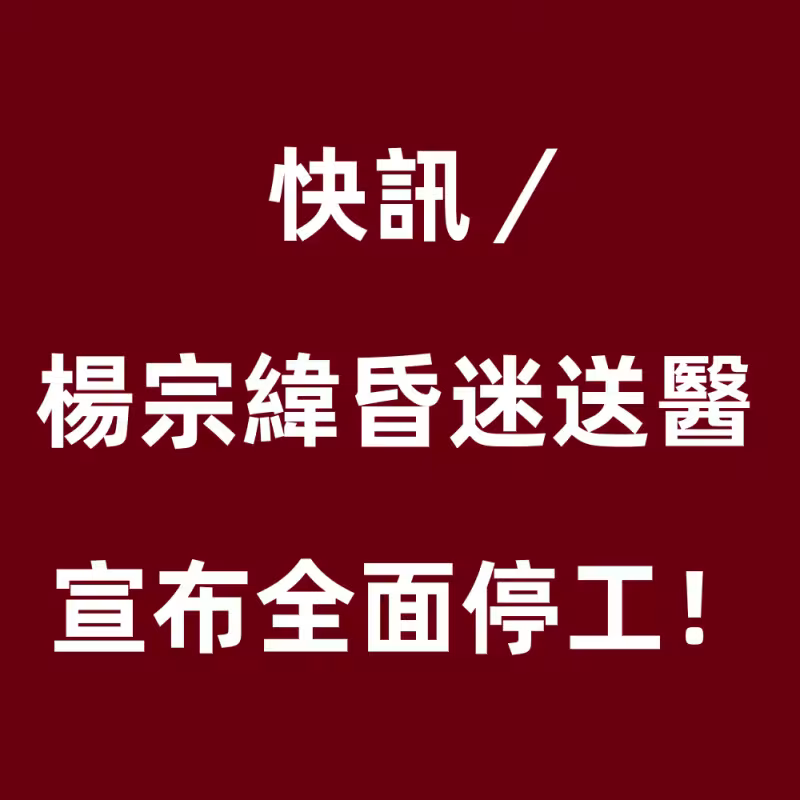 快訊/楊宗緯昏迷送醫 宣布全面停工!