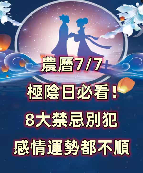 農曆7/7極陰日必看!8大禁忌別犯,感情運勢都不順