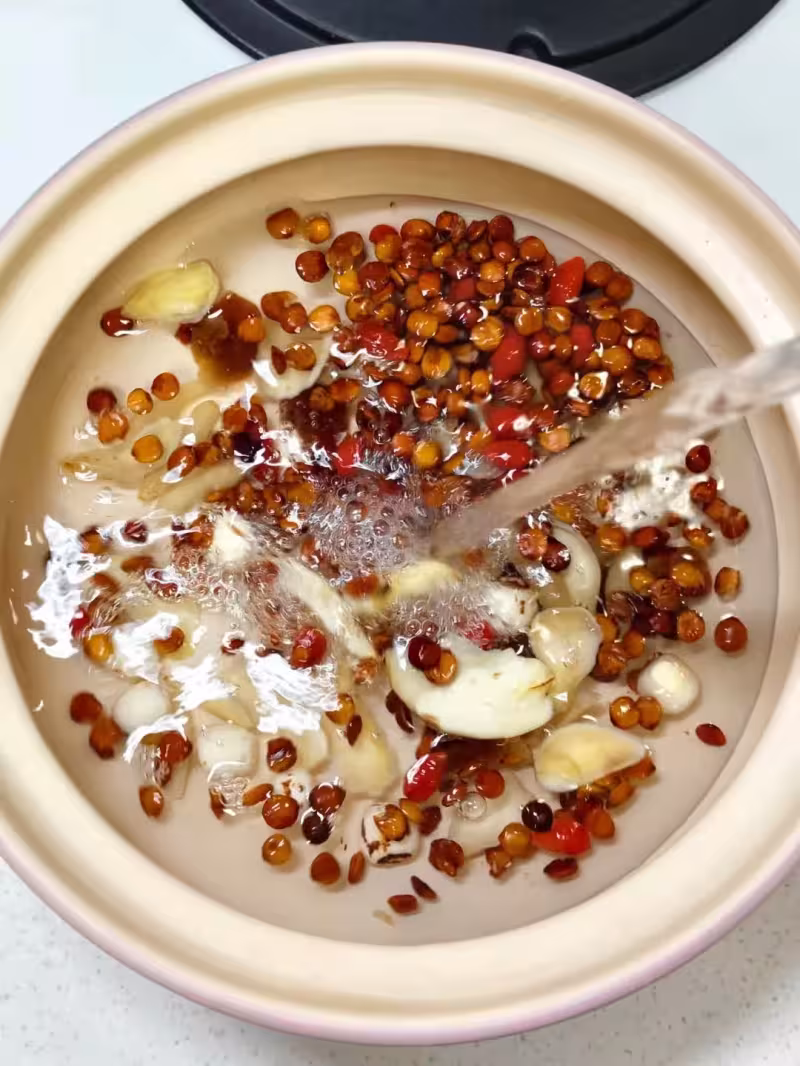 製作過程很簡單。先把百合和蓮子泡軟,酸棗仁稍微沖洗一下。然後把所有材料放進鍋里,加水煮開,再轉小火慢慢煲一個小時左右。湯煮好後會有點淡淡的甜味,不需要加糖。