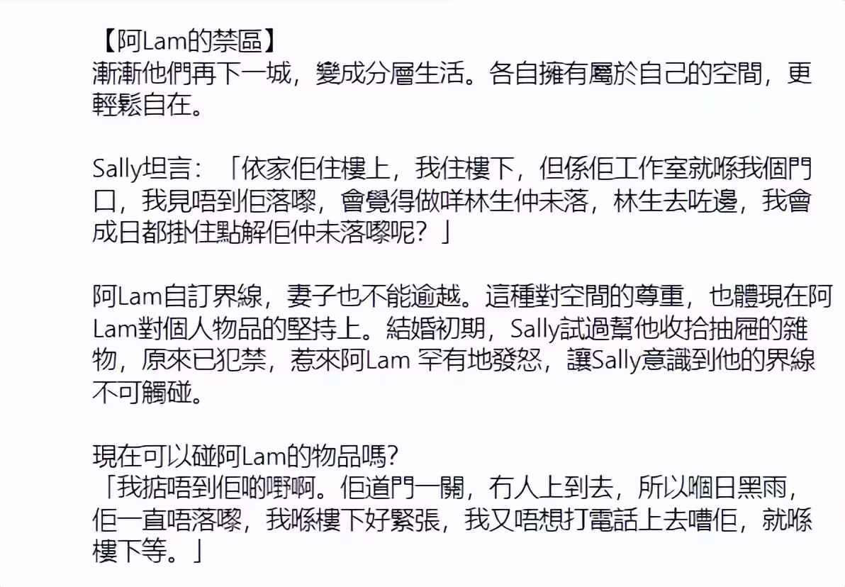 漸漸他們再變成分層生活,各自擁有屬於自己的空間,更輕鬆自在。