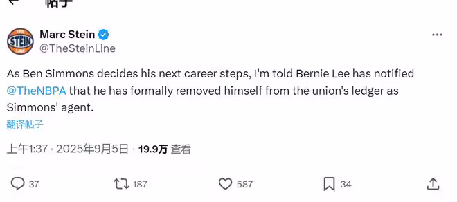 伯尼-李是NBA知名經紀人,旗下有鄧恩、巴特勒等。自由市場開啟兩個多月,西蒙斯一直沒簽約,至今仍是自由身!有兩支球隊想用底薪簽下本-西蒙斯,但西蒙斯不願意接受底薪,他給尼克斯的答覆是自己不確定「是否還想繼續打球」。