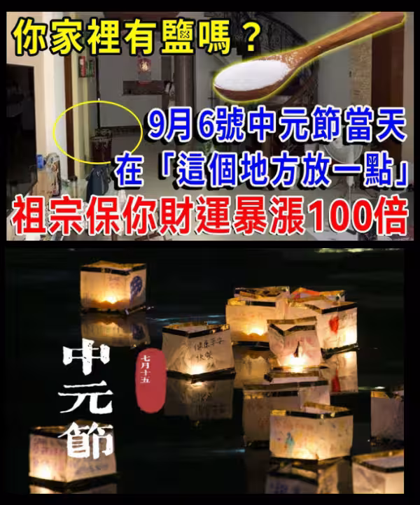 你家裡有鹽嗎?9月6號中元節當天,在「這個地方放一點鹽」,祖宗保你財運暴漲100倍