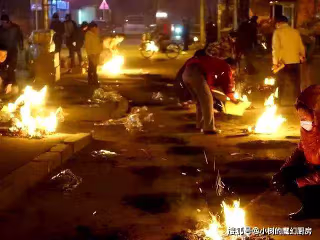 農村的習慣上墳地里燒紙錢,而城市裡的人,一般都在十字路口,尤其到了晚上八九點鐘,人群特別多,記得上一次,我們這把路口都封了,因為車輛過多,怕引燃明火。