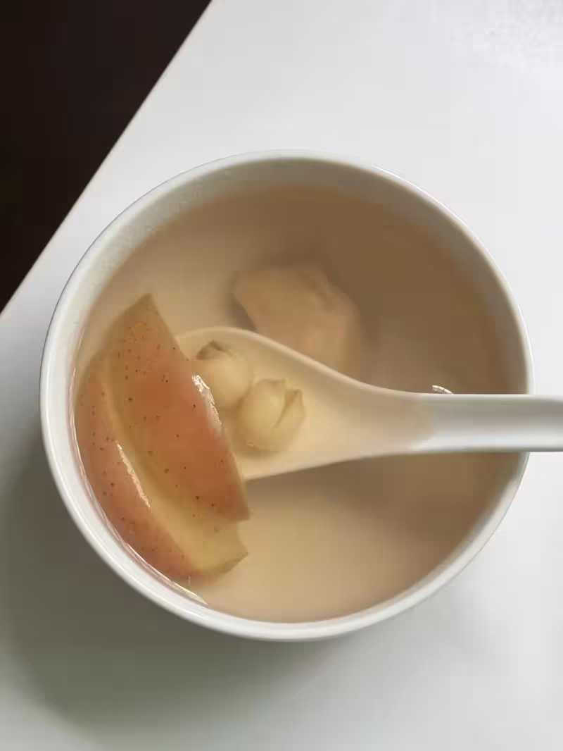 由於我不停地吃「蒸蘋果水」,導致臉蛋越來越紅潤透亮