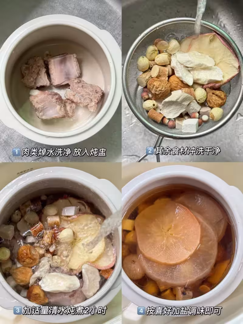 五指毛桃、茯苓、芡實、蓮子、懷山藥各8g,蘋果適量