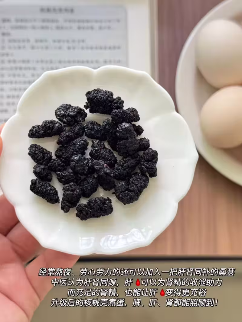 核桃殼、分心木、雞蛋、鹽、桑葚干