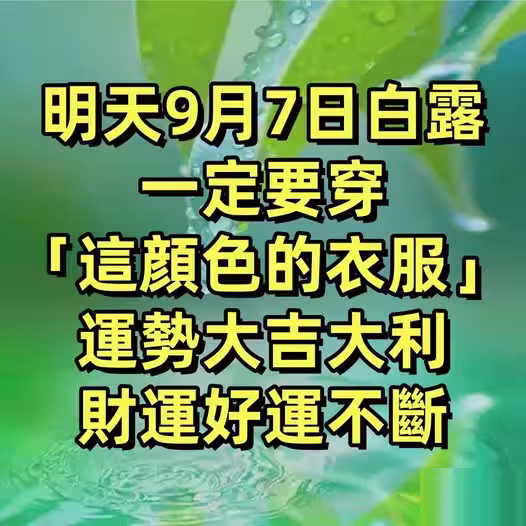 明天白露,一定要穿「這個顏色的衣服」運勢大吉大利, 財運好運不斷!