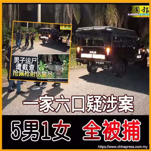 (怡保7日訊)「男子運屍拒查後傷警逃逸」一案;警方目前已逮捕涉案的一家六口助查!