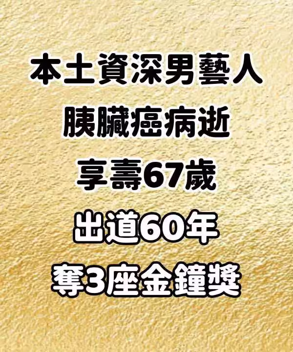 本土資深男藝人,胰臟癌病逝享壽67歲 出道60年奪3座金鐘獎.