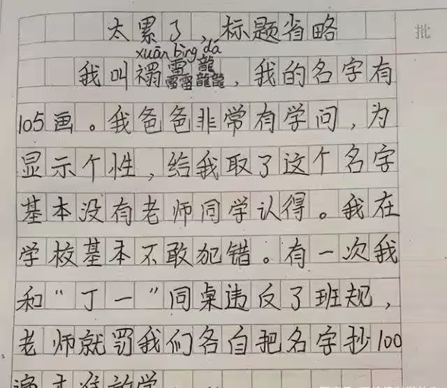 小學生因名字走紅 全名72劃,班導崩潰:我教不了你