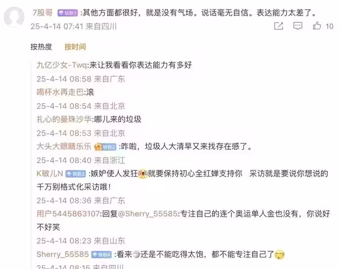 網絡的陰影並不因她年少而含糊。賽後有人冷冷發出一條評論,帶著一種高高在上的成就感:「動作再標準有什麼用?沒氣場、沒口才、沒自信,純純三無產品。」這類評價像一把無形的叉子,插在她的自信之上。全紅嬋反應乾脆,回以三個字的破防回復,配上一個笑哭的表情包——這代人早已習慣用坦誠對抗虛偽的偽善。於是,粉絲們的怒潮並非毫無道理:東京奧運時她說過「想賺錢給媽媽治病」,那時的她仿佛就已經把成長的重量放在肩頭。如今,青春期的身體變化讓訓練變得更為吃力。每一次採訪,她都直陳現實:「肌肉記憶亂了套,但我願意堅持去克服。」這種真實在某些人眼裡被視作「沒有文化」的證據,然而卻是她最寶貴的底色。