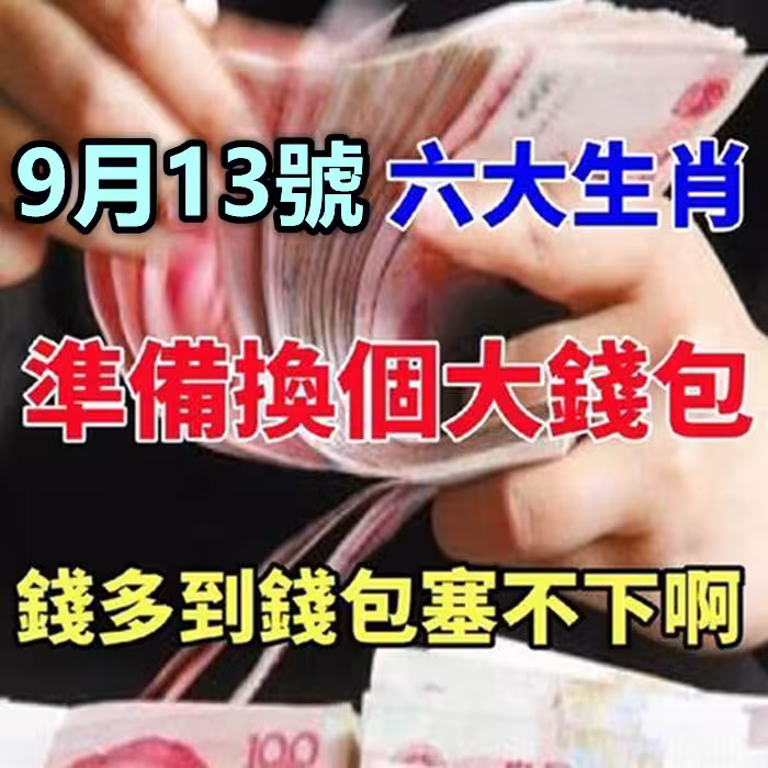 9月13號:六大生肖準備換個大荷包,錢多到錢包塞不下啊!