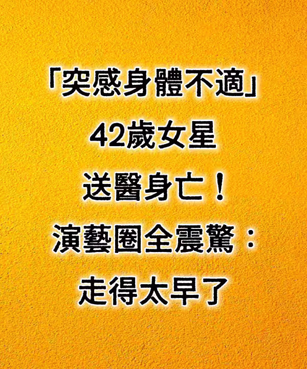 「突感身體不適」42歲女星送醫身亡!演藝圈全震驚: 走得太早了