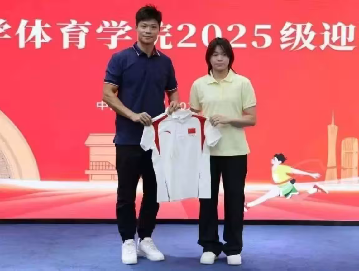 全紅嬋學的是運動訓練專業,所屬學院為體育學院。該院的院長是短跑名將蘇炳添。昨日,體育學院專門舉辦迎新大會。會上,蘇炳添與每一位新生進行合影。全紅嬋上台時,蘇炳添拿著一件國家隊的運動服與之合影。